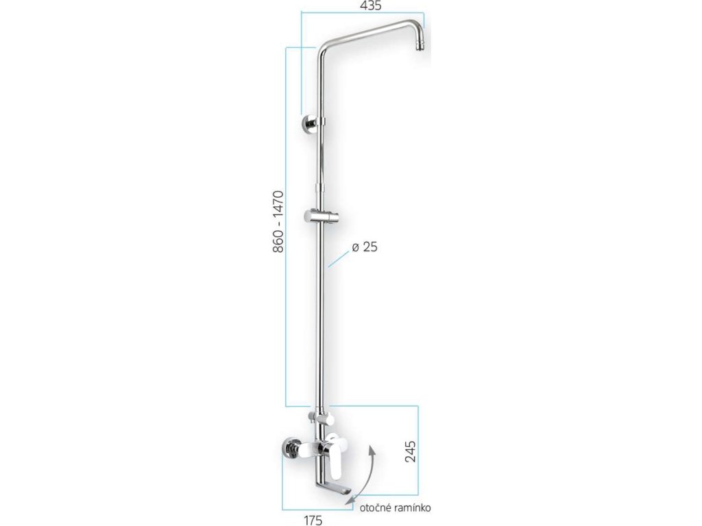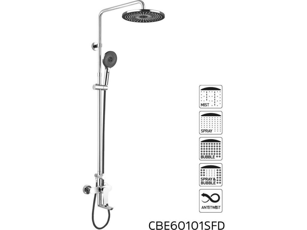 Vanový set obsahuje baterii se sprchovou soupravou a otočným ramínkem, třípolohovou ruční a kulatou talířovou sprchu. Sprcha je osazena standardním závitem 1/2" pro připojení na sprchovou hadici. Součástí je také černá připojovací hadice o délce 150 cm.