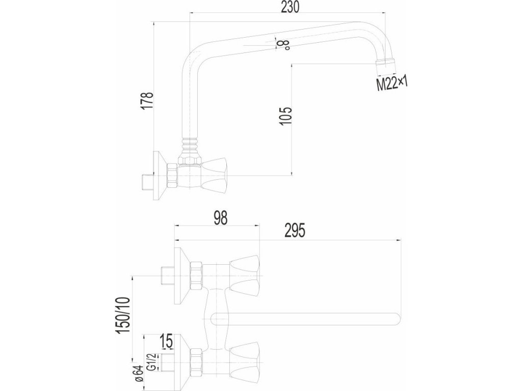 Mereo Dřezová nástěnná baterie, Kasia, 150 mm, s U ramínkem trubkovým ø 18 mm - 230 mm, chrom CBS30104