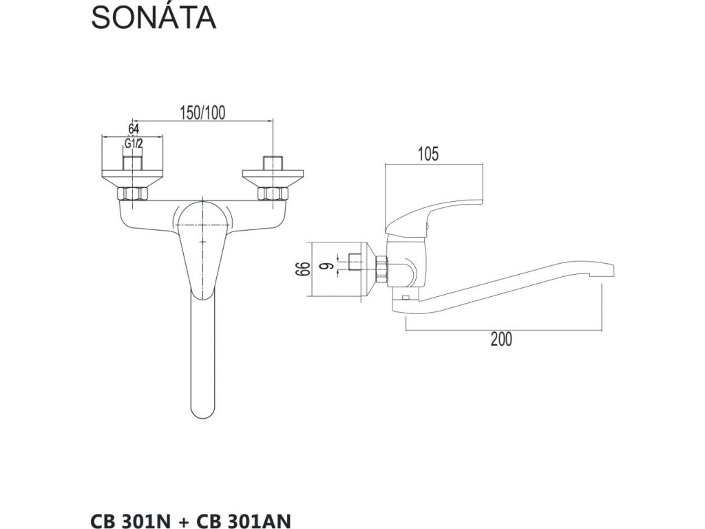Mereo Dřezová nástěnná baterie, Sonáta, 100 mm, s ramínkem plochým vyhnutým 200 mm, chrom CB301AN