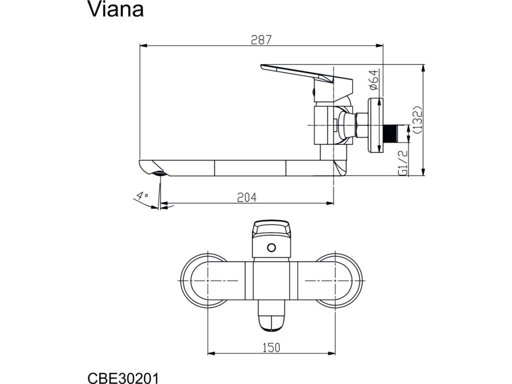 Mereo Dřezová nástěnná baterie, Viana, 150 mm, s ramínkem plochým rovným 200 mm, chrom CBE30201