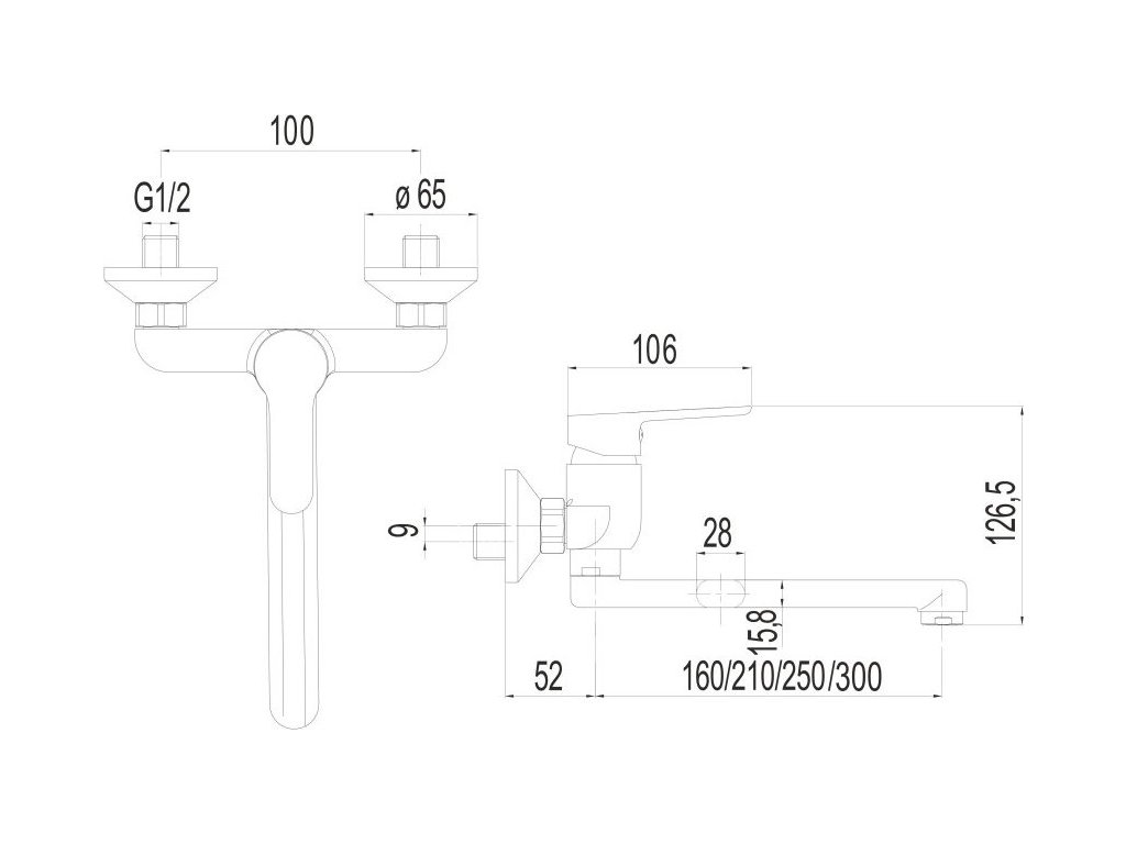 Mereo Dřezová nástěnná baterie, Zuna, 100 mm, s ramínkem plochým rovným 300 mm, chrom CB302A06Z