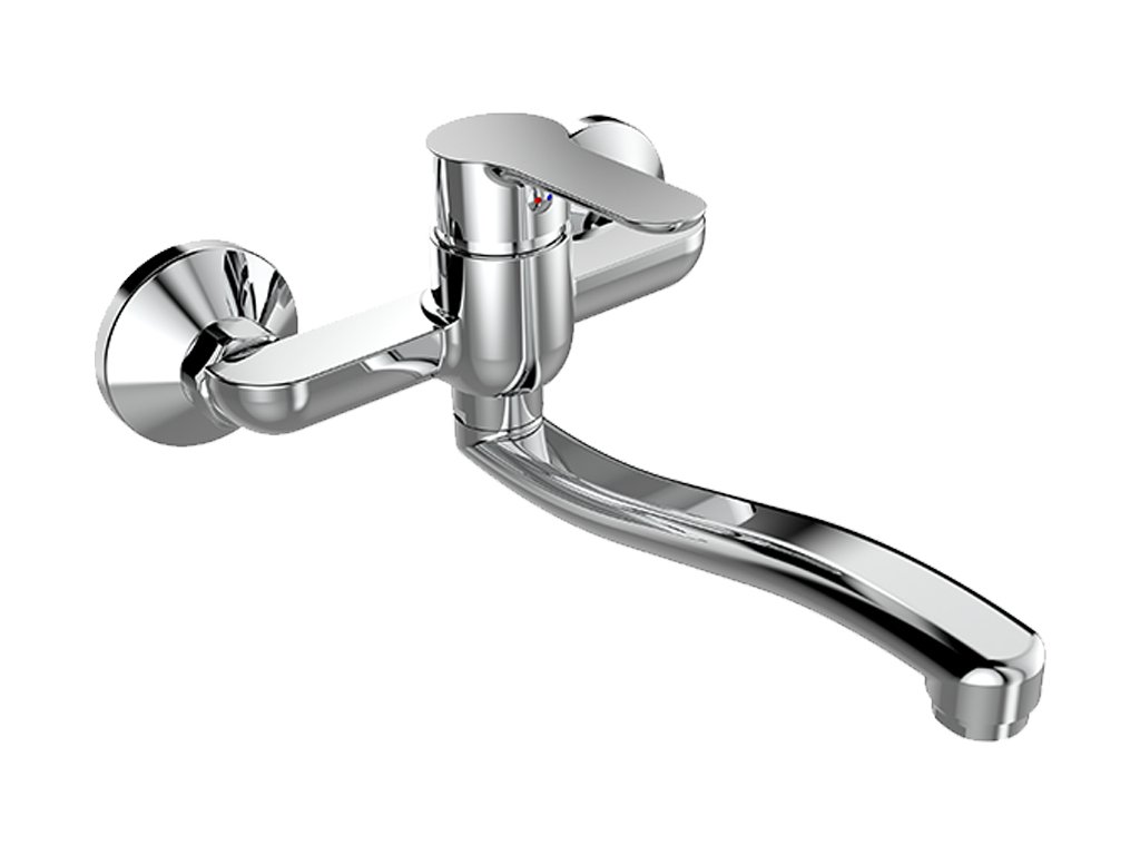 Mereo Dřezová nástěnná baterie, Zuna, 150 mm, s ramínkem plochým vyhnutým 200 mm, chrom CB301Z