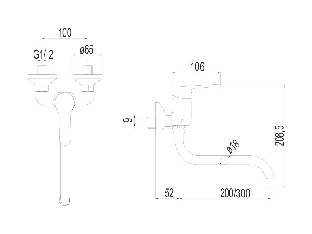 Mereo Dřezová nástěnná baterie , 100 mm, s ramínkem trubkovým ø 18 mm - 300 mm, chrom CB301A06Z