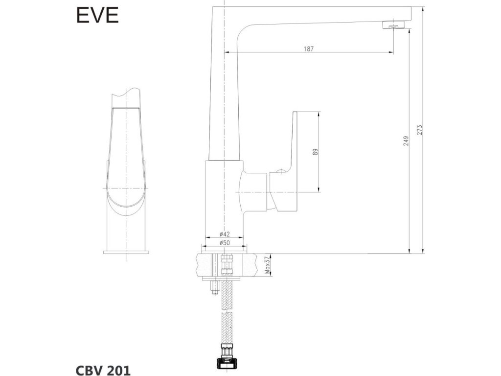 Mereo Dřezová stojánková baterie, Eve, s plochým ramínkem nad pákou, výška 273 mm, chrom CBV201