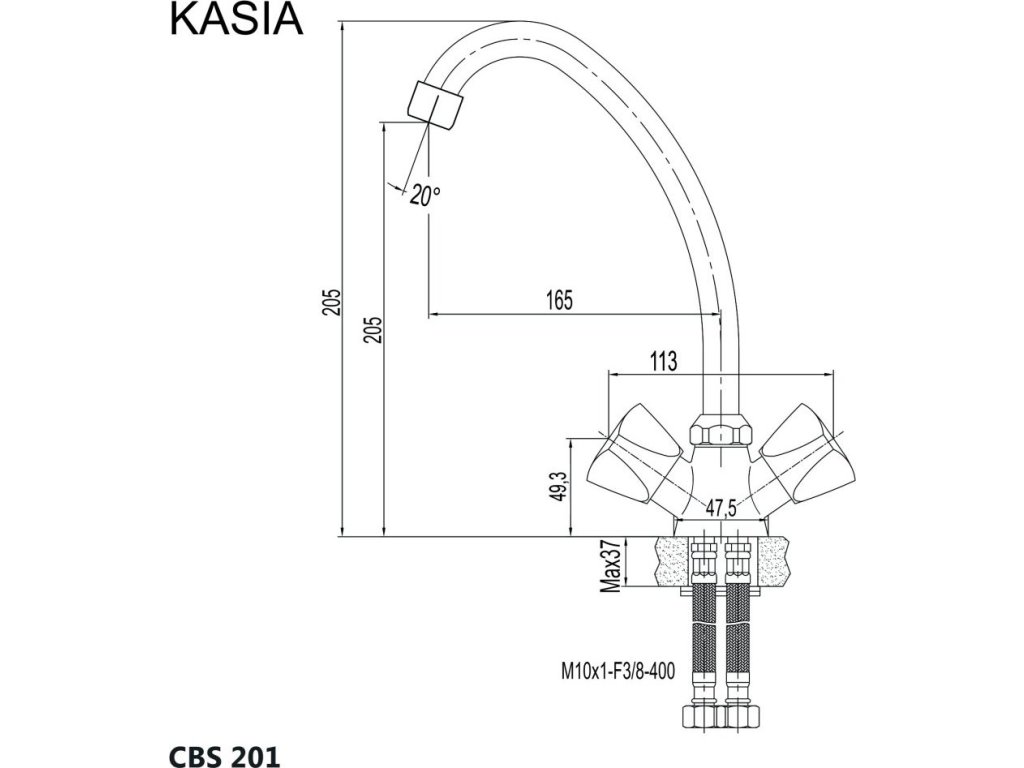Mereo Dřezová stojánková baterie, Kasia, výška 250 mm, chrom CBS201