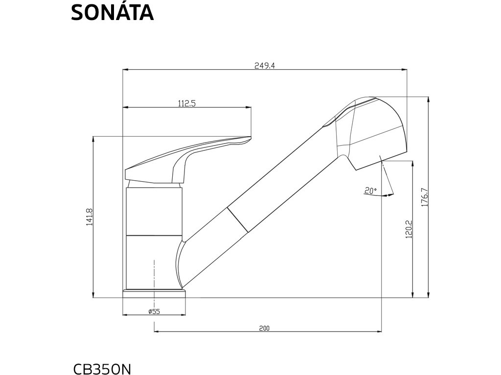 Mereo Dřezová stojánková baterie, Sonáta, s výsuvnou sprchou, chrom CB350N
