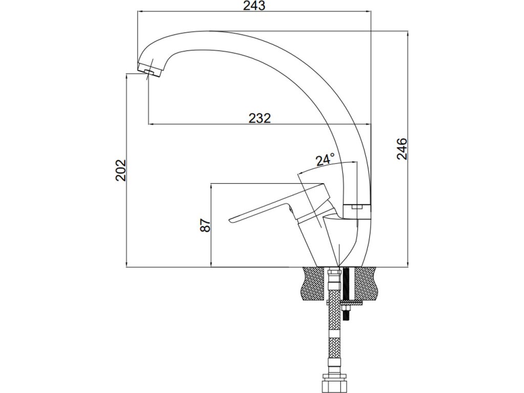 Mereo Dřezová stojánková mimoúrovňová baterie, Zuna, s ramínkem nad pákou, výška 240 mm, chrom CB20103Z