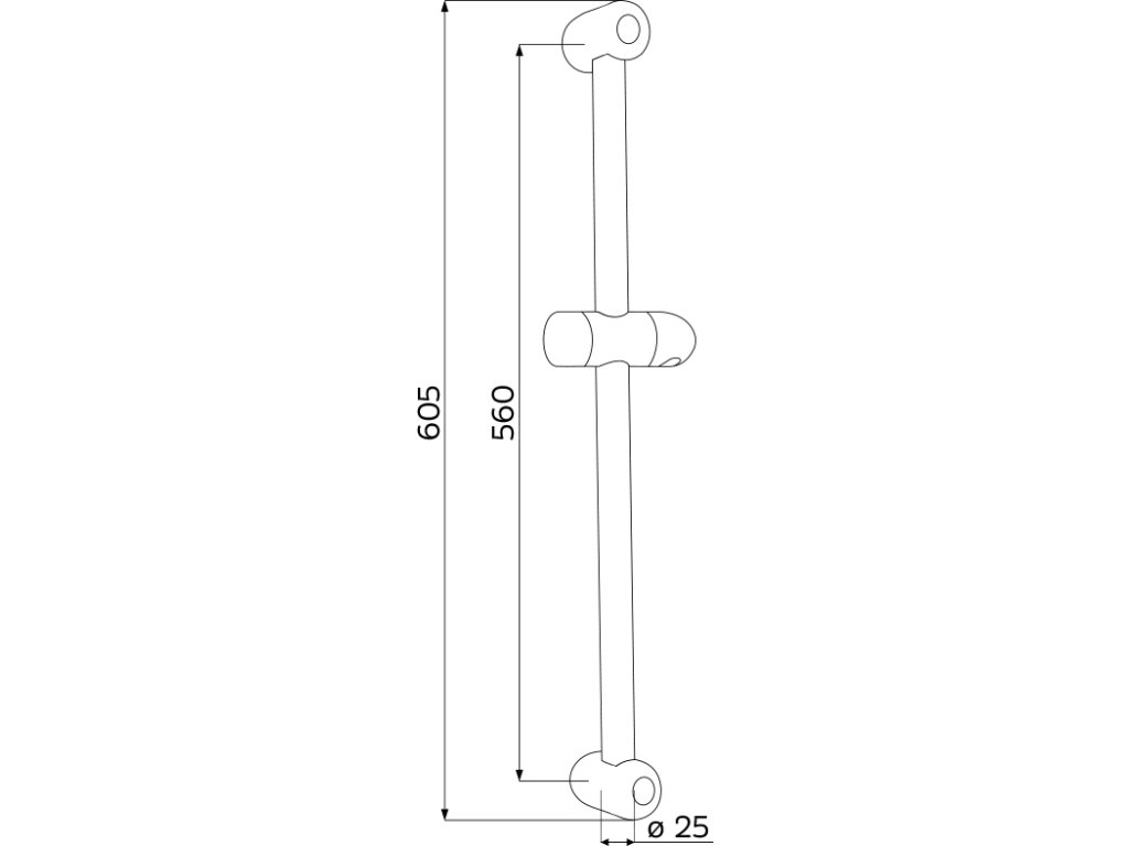 Držák sprchy 600 mm, nerezová tyč ø 22 mm, ostatní současti z pochromovaného plastu