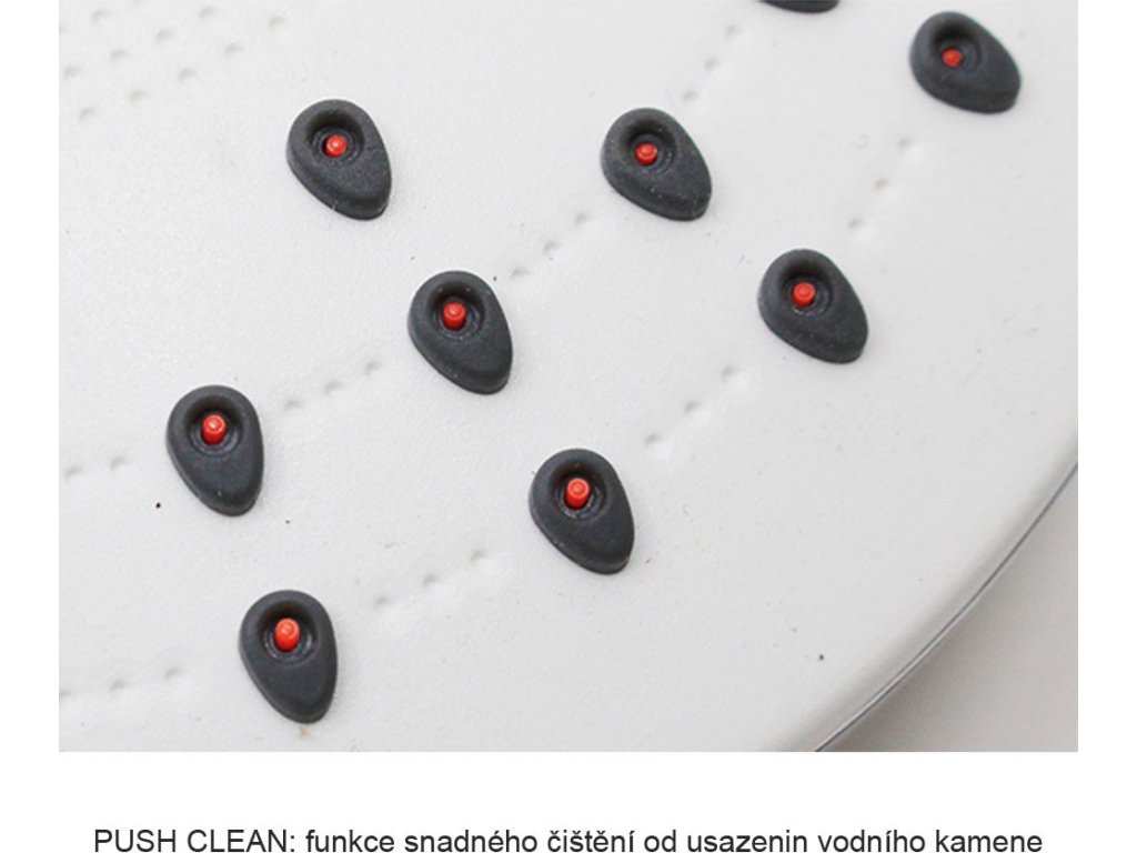 Třípolohová sprchová hlavice se vyznačuje moderním designem, vysokou variabilitou a především umožňuje téměř libovolnou kombinaci s příslušenstvím sprchového programu. Tato hlavice disponuje funkcí Push Clean pro ještě snadnější čištění. Funkce spočívá v tom, že páčku posunete do polohy vlevo a z trysek vyjedou červené tvrdé bodlinky, které vytlačí ven všechny usazeniny. Ty pak jednoduše spláchnete puštěním vody. Sprcha je osazena standardním závitem 1/2" pro připojení na sprchovou hadici.