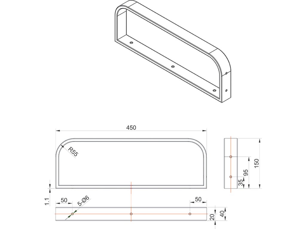 Mereo Konzole černá pod nábytkovou desku - oblá CN102KB