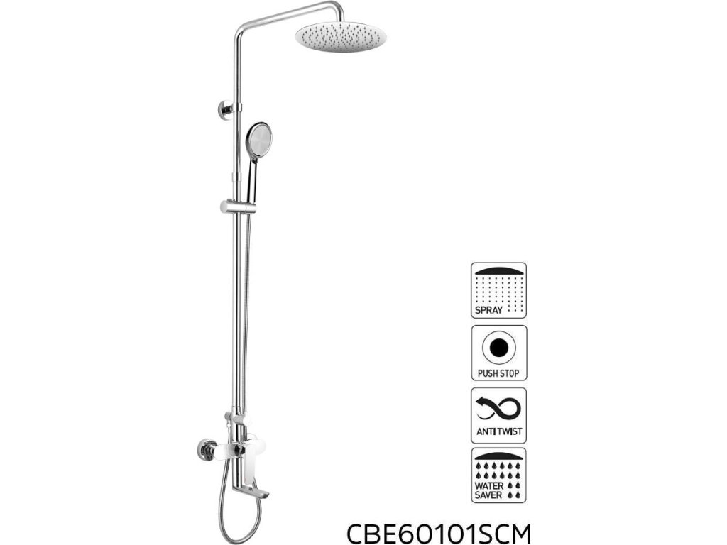 Vanový set obsahuje baterii se sprchovou soupravou a otočným ramínkem, třípolohovou ruční a kulatou talířovou sprchu slim. Sprcha je osazena standardním závitem 1/2" pro připojení na sprchovou hadici. Součástí je také dvouzámková nerezová připojovací hadice o délce 150 cm.