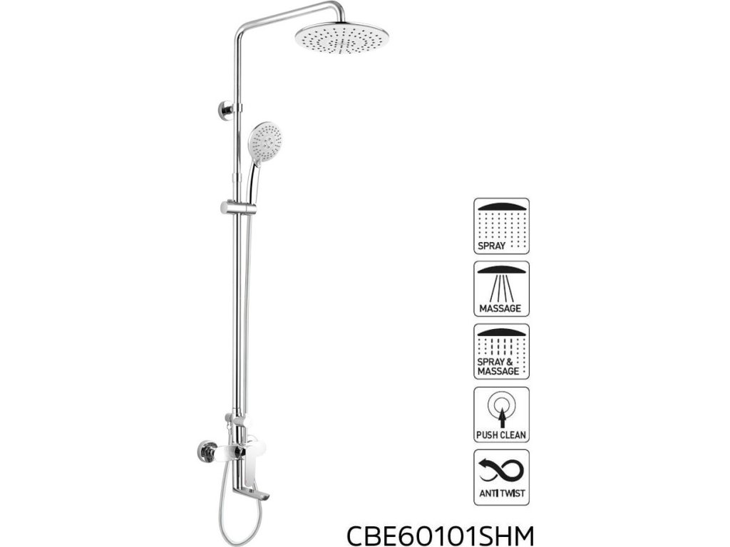 Vanový set obsahuje baterii se sprchovou soupravou a otočným ramínkem, třípolohovou ruční a kulatou talířovou sprchu. Sprcha je osazena standardním závitem 1/2" pro připojení na sprchovou hadici. Součástí je také šedostříbrná připojovací hadice o délce 150 cm.