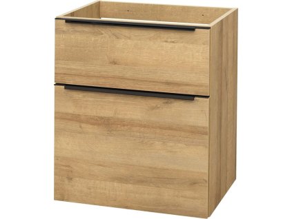Mailo, koupelnová skříňka 605x700x476 mm, spodní, dub Riviera, 2 zásuvky, černé madlo. Možno kombinovat s umyvadlem, popř. s koupelnovou deskou na skříňku.