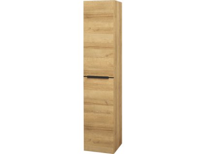 Mailo, koupelnová skříňka vysoká, 350x1700x385 mm, závěsná, levé nebo pravé otevírání, dub Riviera, černé madlo.