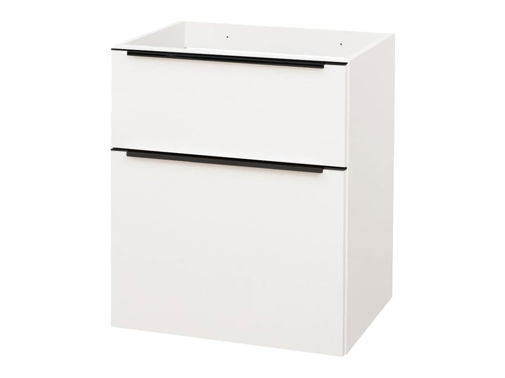 Mailo, koupelnová skříňka 605x700x476 mm, spodní, bílá mat, 2 zásuvky, černé madlo. Možno kombinovat s umyvadlem, popř. s koupelnovou deskou na skříňku.
