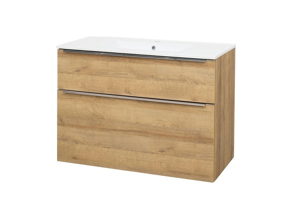 Mereo Mailo, koupelnová skříňka s keramickým umyvadlem 101 cm, dub Riviera, chrom madlo CN522