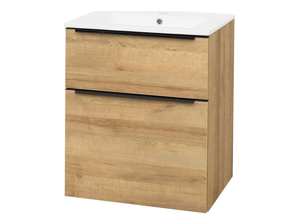 Mereo Mailo, koupelnová skříňka s keramickým umyvadlem 61 cm, dub Riviera, černé madlo CN520B