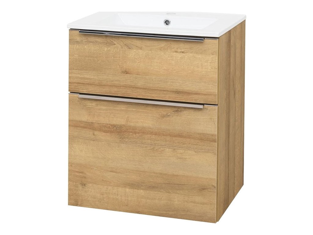 Mereo Mailo, koupelnová skříňka s keramickým umyvadlem 61 cm, dub Riviera, chrom madlo CN520
