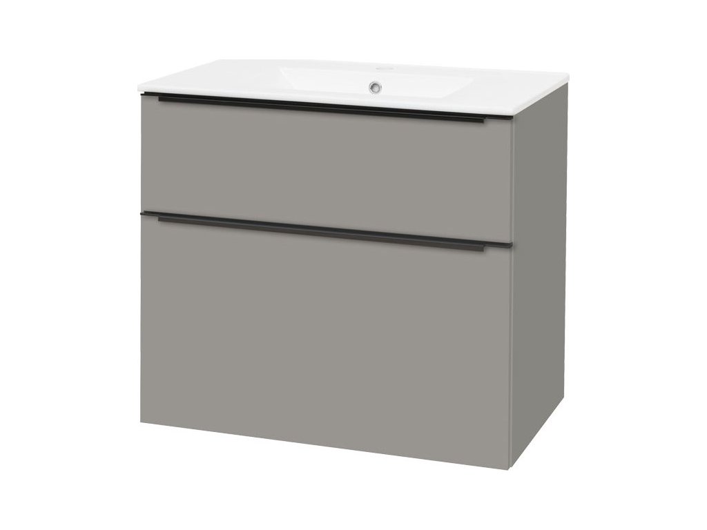Mereo Mailo, koupelnová skříňka s keramickým umyvadlem 81 cm, šedá mat, černé madlo CN571B