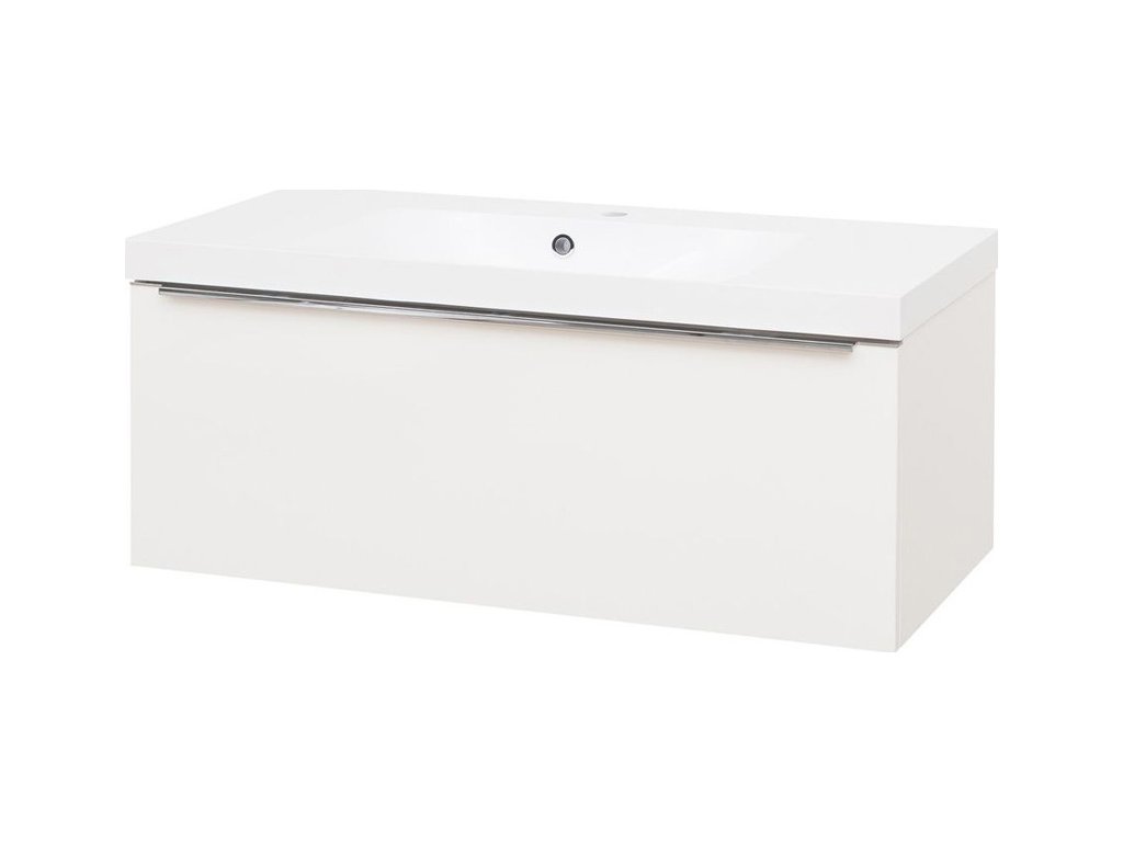 Mereo Mailo, koupelnová skříňka s umyvadlem z litého mramoru 101 cm, bílá, chrom madlo CN517M