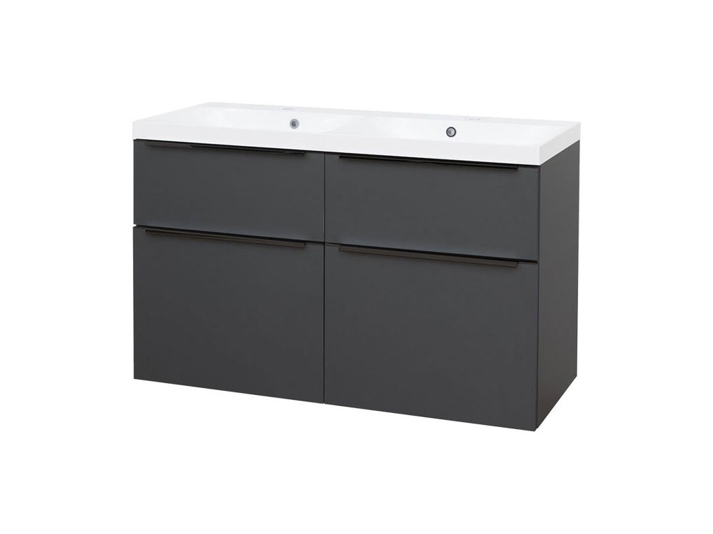 Mereo Mailo, koupelnová skříňka s umyvadlem z litého mramoru 121 cm, antracit, černé madlo CN533MB
