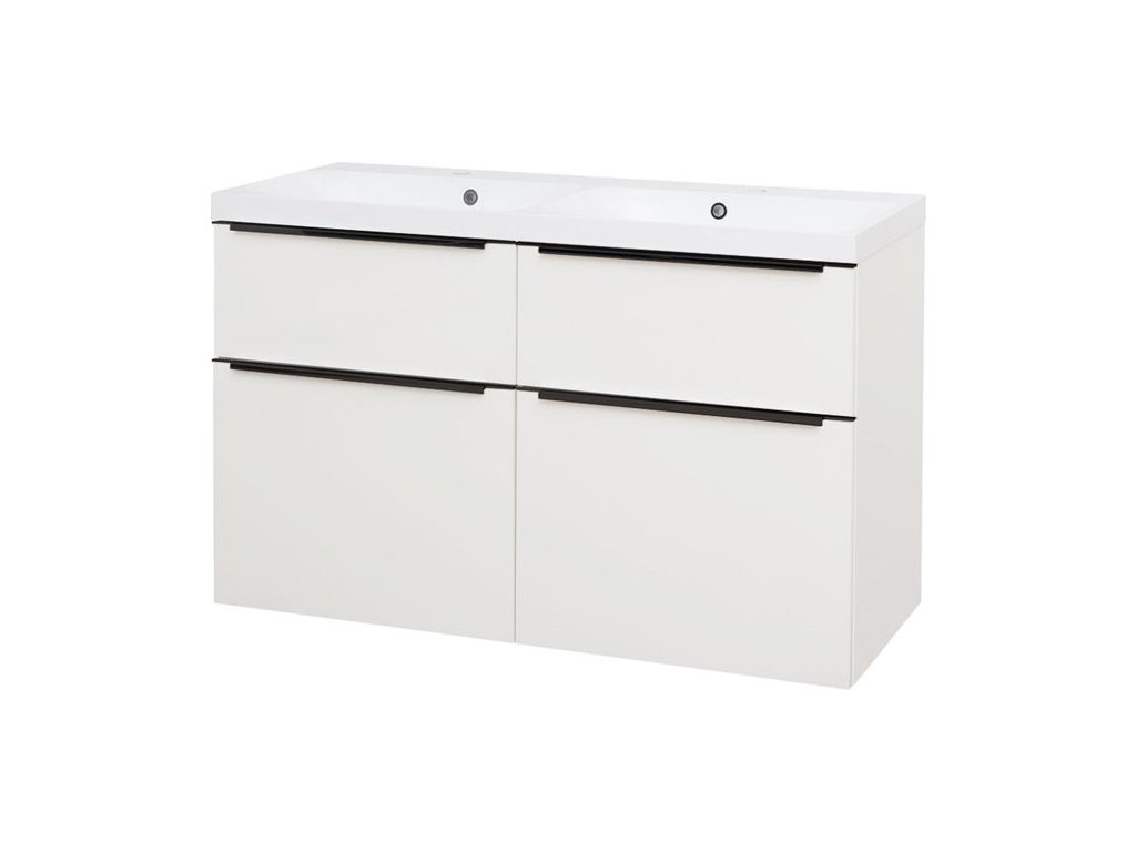 Mereo Mailo, koupelnová skříňka s umyvadlem z litého mramoru 121 cm, bílá, černé madlo CN513MB