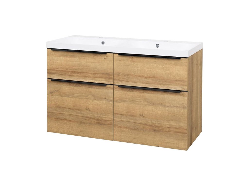 Mereo Mailo, koupelnová skříňka s umyvadlem z litého mramoru 121 cm, dub Riviera, černé madlo CN523MB