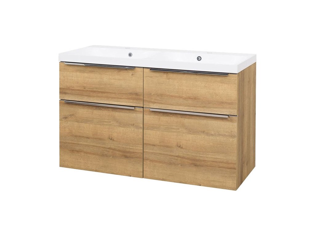 Mereo Mailo, koupelnová skříňka s umyvadlem z litého mramoru 121 cm, dub Riviera, chrom madlo CN523M