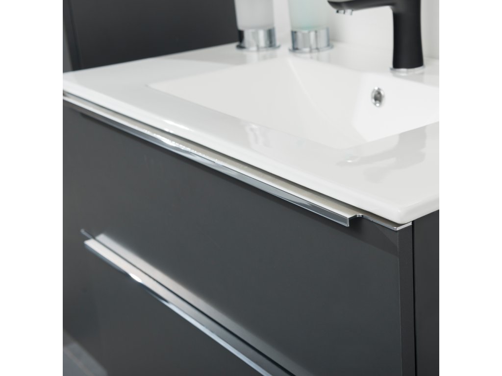 Mereo Mailo, koupelnová skříňka s umyvadlem z litého mramoru 61 cm, antracit, chrom madlo CN530M