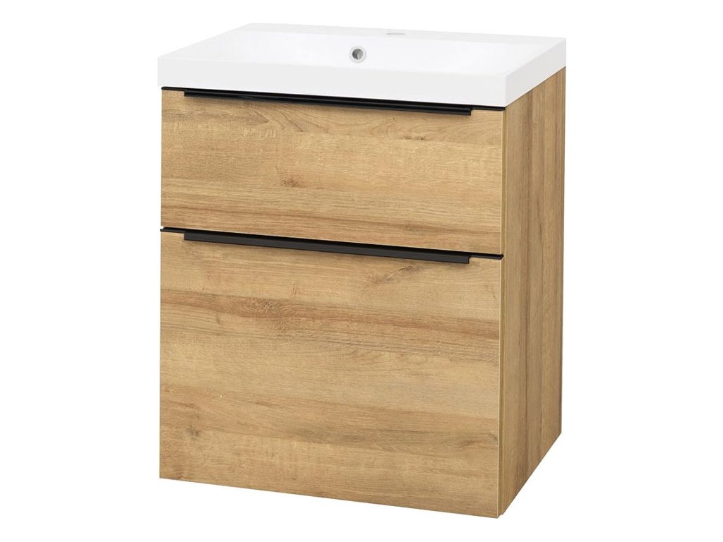 Mereo Mailo, koupelnová skříňka s umyvadlem z litého mramoru 61 cm, dub Riviera, černé madlo CN520MB