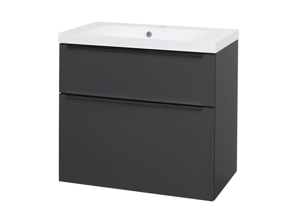 Mereo Mailo, koupelnová skříňka s umyvadlem z litého mramoru 81 cm, antracit, černé madlo CN531MB