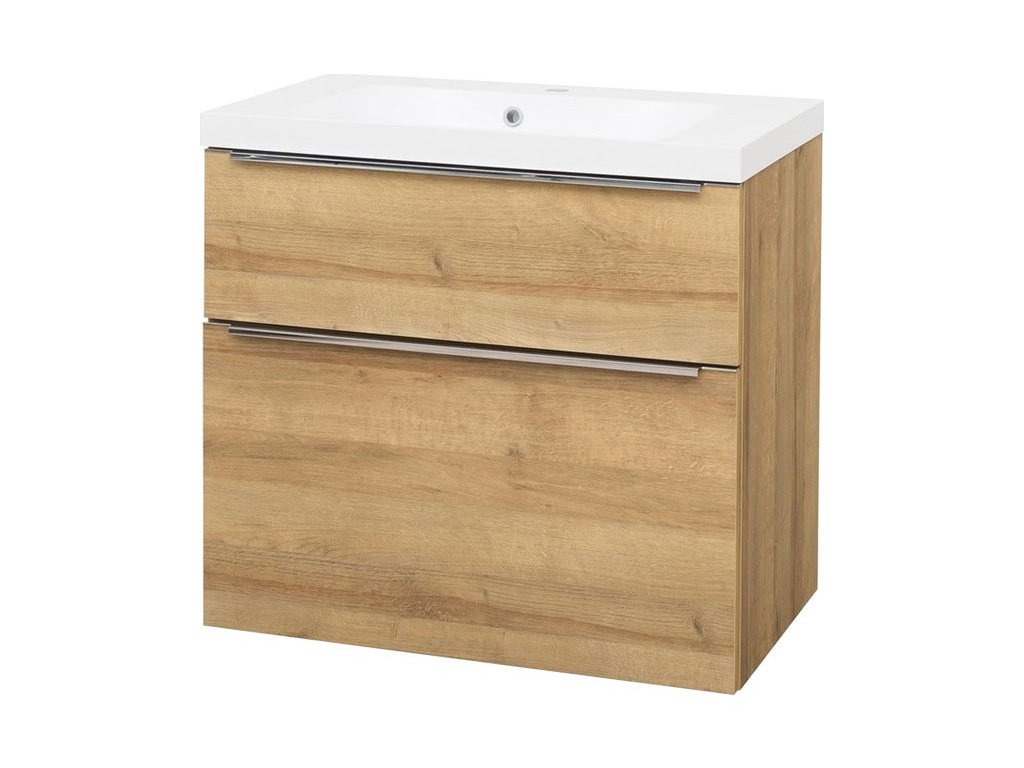 Mereo Mailo, koupelnová skříňka s umyvadlem z litého mramoru 81 cm, dub Riviera, chrom madlo CN521M