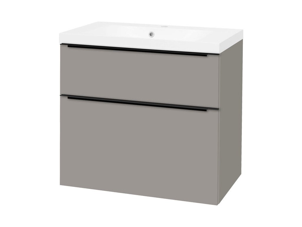 Mereo Mailo, koupelnová skříňka s umyvadlem z litého mramoru 81 cm, šedá mat, černé madlo CN571MB