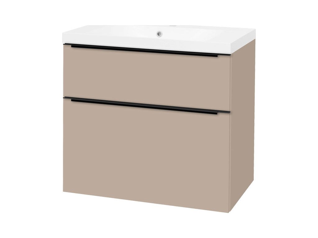 Mereo Mailo, koupelnová skříňka s umyvadlem z litého mramoru 81 cm, šedý kámen, černé madlo CN551MB