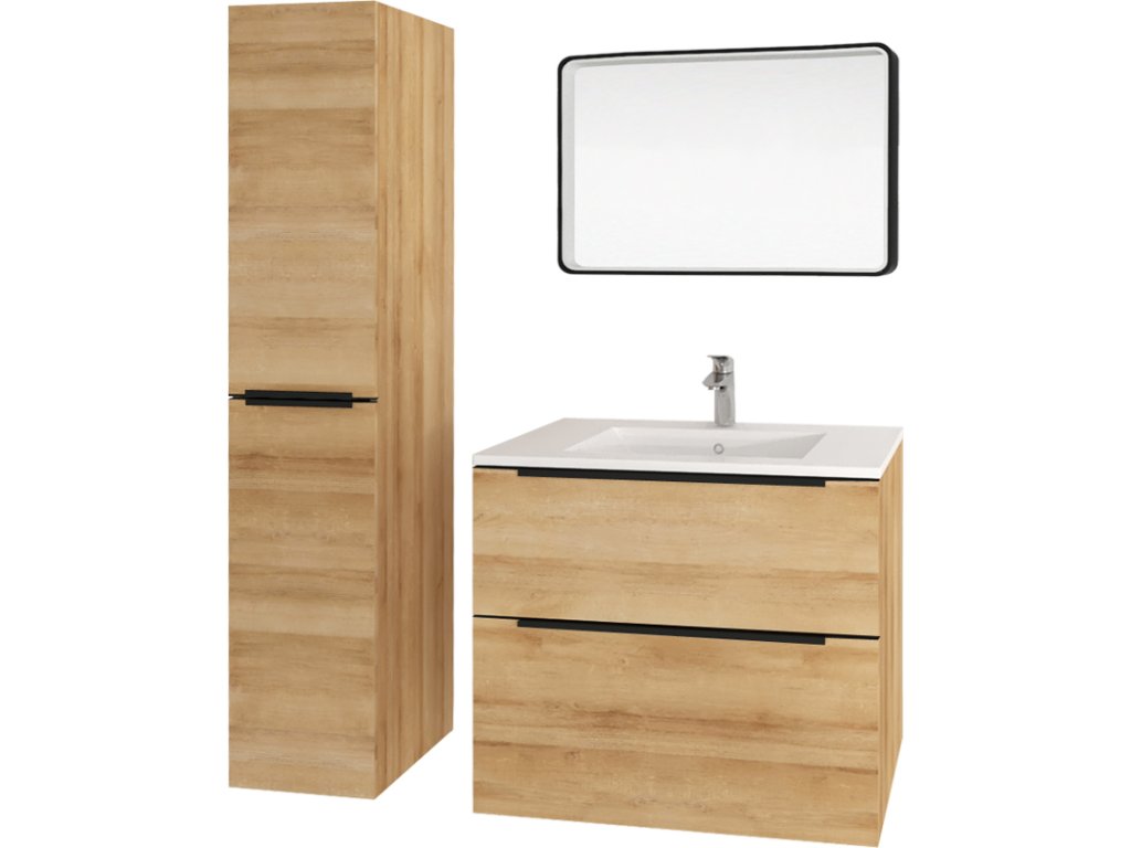 Mailo, koupelnová skříňka s umyvadlem z litého mramoru, 810x750x476 mm, spodní, dub Riviera, 2 zásuvky, černé madlo.