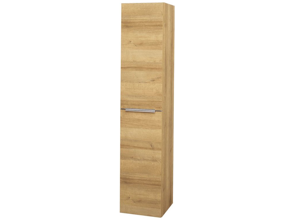 Mailo, koupelnová skříňka vysoká, 350x1700x385 mm, závěsná, levé nebo pravé otevírání, dub Riviera, černé madlo.