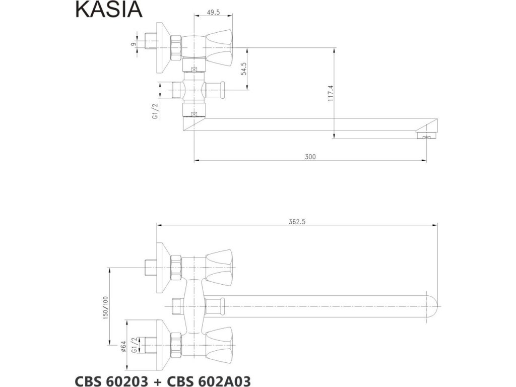 Mereo Nástěnná baterie do byt. jádra, Kasia, 150 mm, s ramínkem 300 mm, bez příslušenství, chrom CBS60203