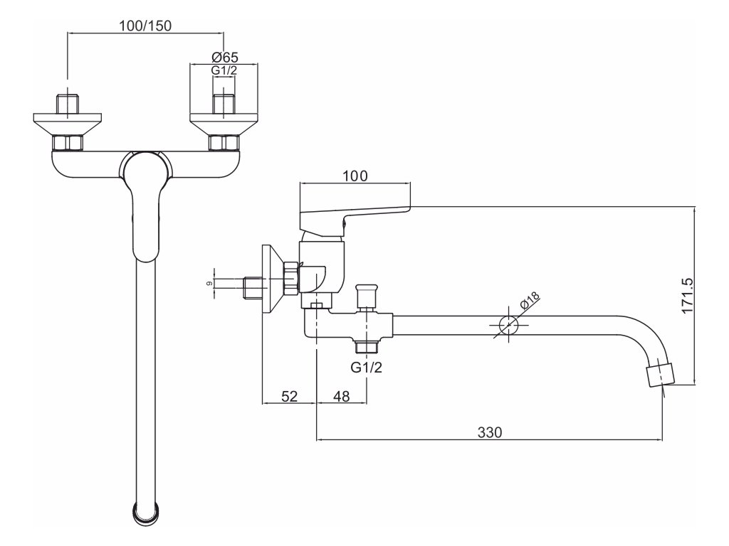 Mereo Nástěnná baterie do byt. jádra, Zuna, 150 mm, s ramínkem ø 18 mm - 330 mm, bez přísluš. CB60203Z