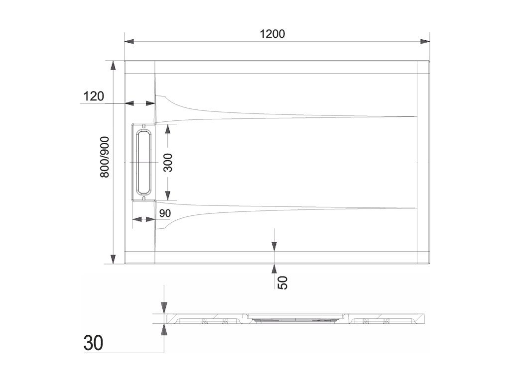 Mereo Obdélníková sprchová vanička s hranatým krytem sif.,120x90x3 cm, vč. sif., bez nožiček, litý mramor CV77KS