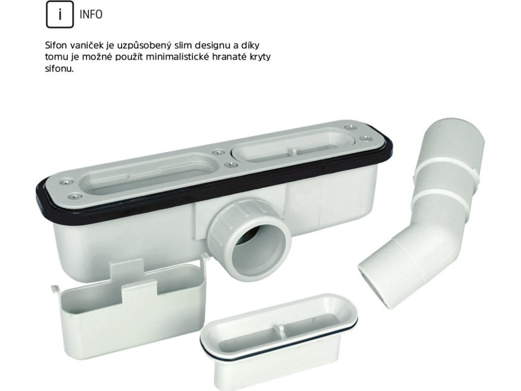Varianta montáže litých vaniček (nožičky a panel nejsou součástí balení):