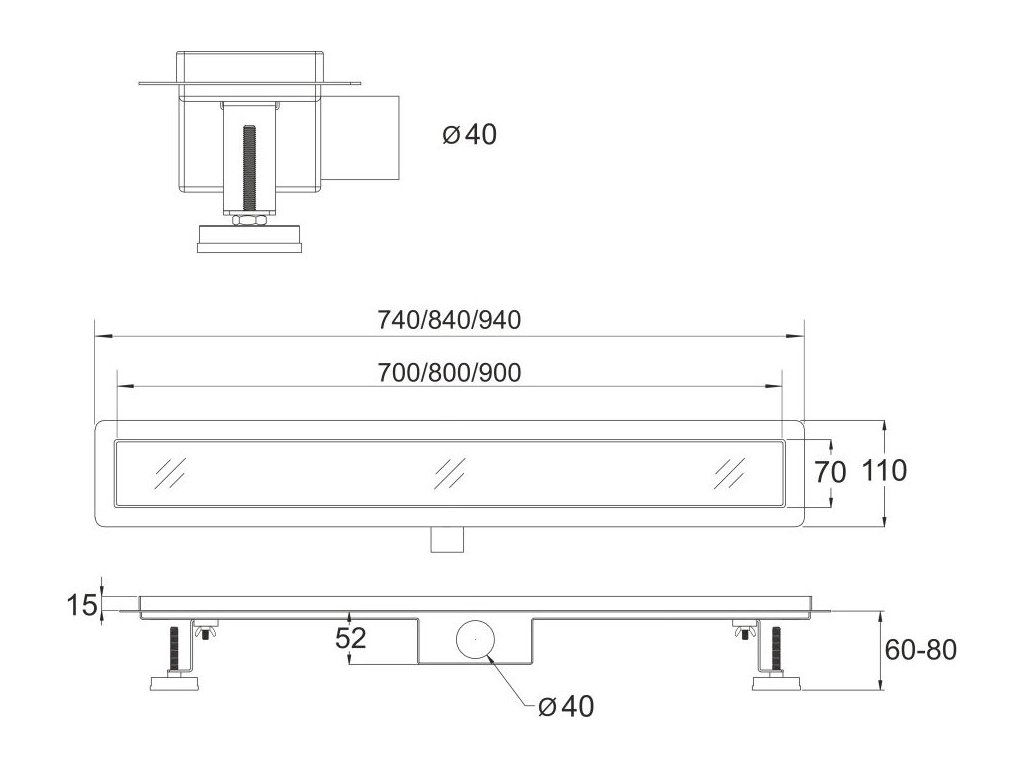 Mereo Odtokový sprchový žlab 80 cm, vč. roštu STRIP CZ122
