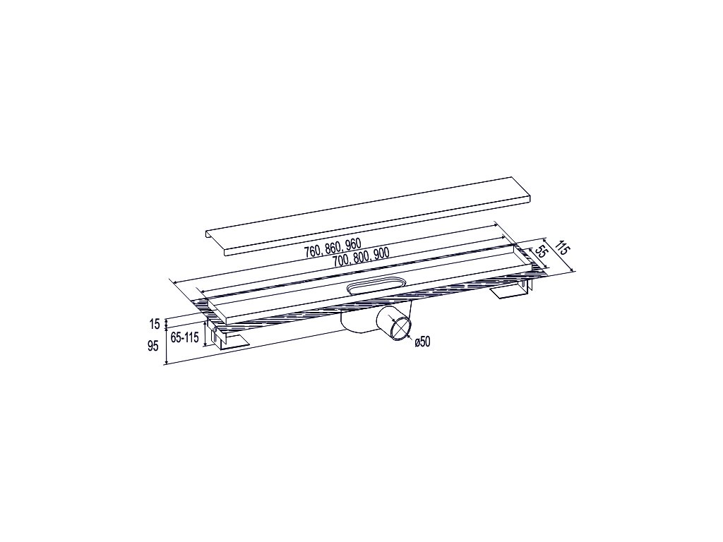 Žlab se dodává bez roštu, který je možné dokoupit samostatně v designu Line, Square, Circle nebo Tile.