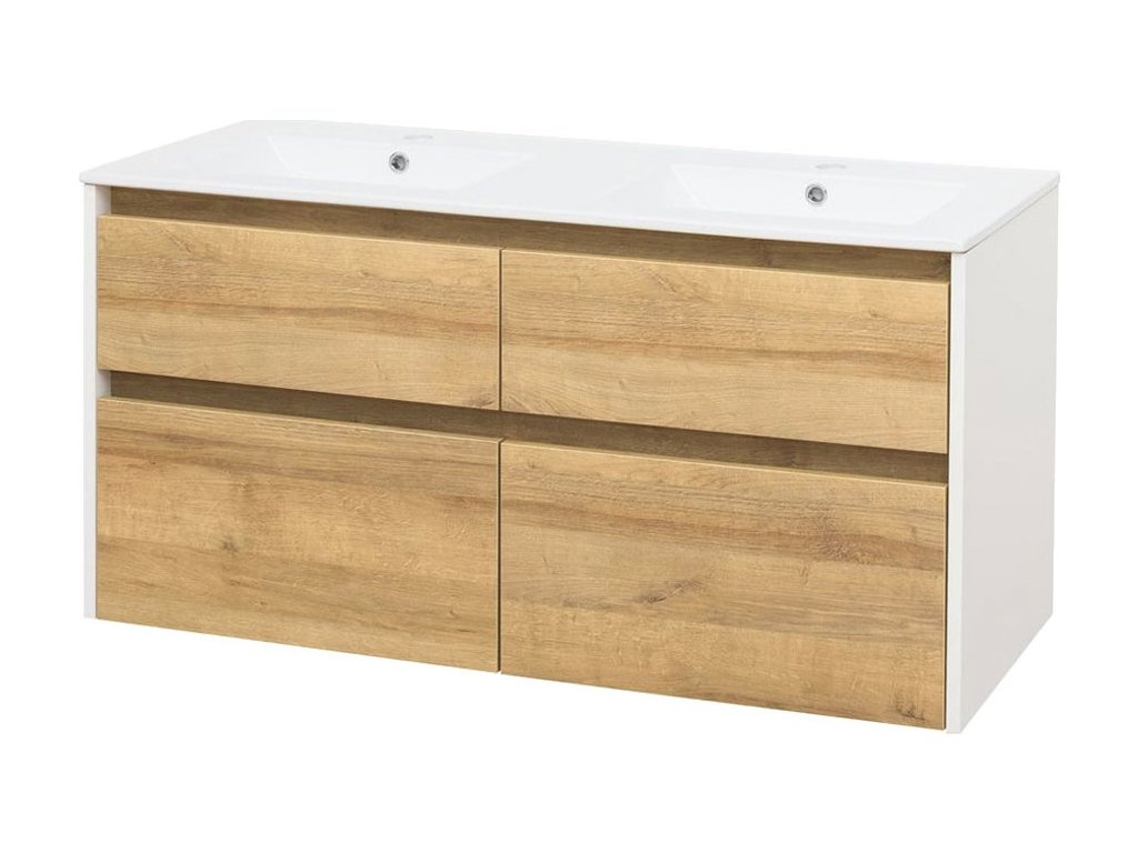 Mereo Opto, koupelnová skříňka s keramickým umyvadlem 121 cm, bílá/dub Riviera CN933