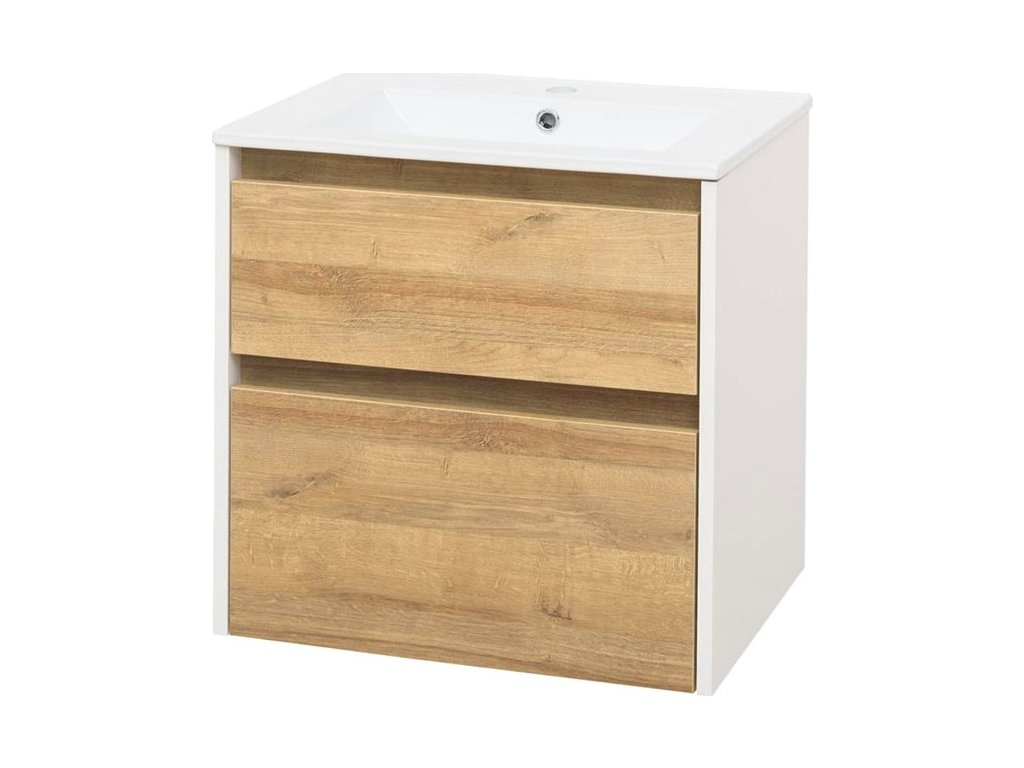 Mereo Opto, koupelnová skříňka s keramickým umyvadlem 61 cm, bílá/dub Riviera CN930