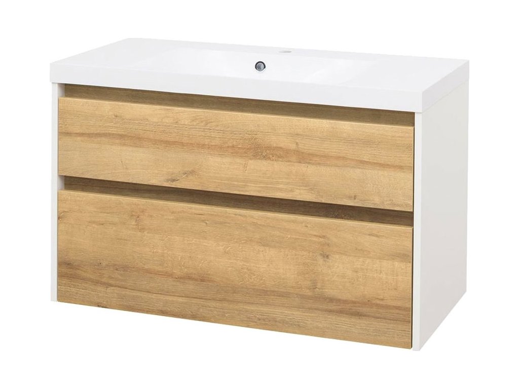 Mereo Opto, koupelnová skříňka s umyvadlem z litého mramoru 101 cm, bílá/dub Riviera CN932M
