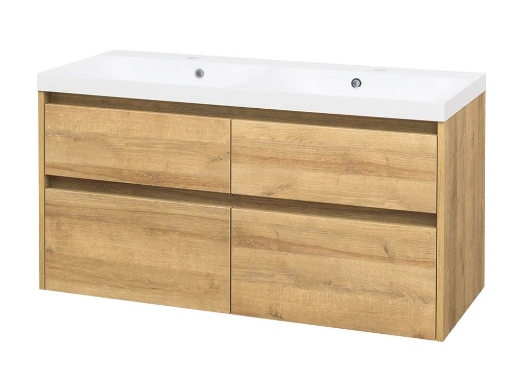 Mereo Opto, koupelnová skříňka s umyvadlem z litého mramoru 121cm, dub Riviera CN923M