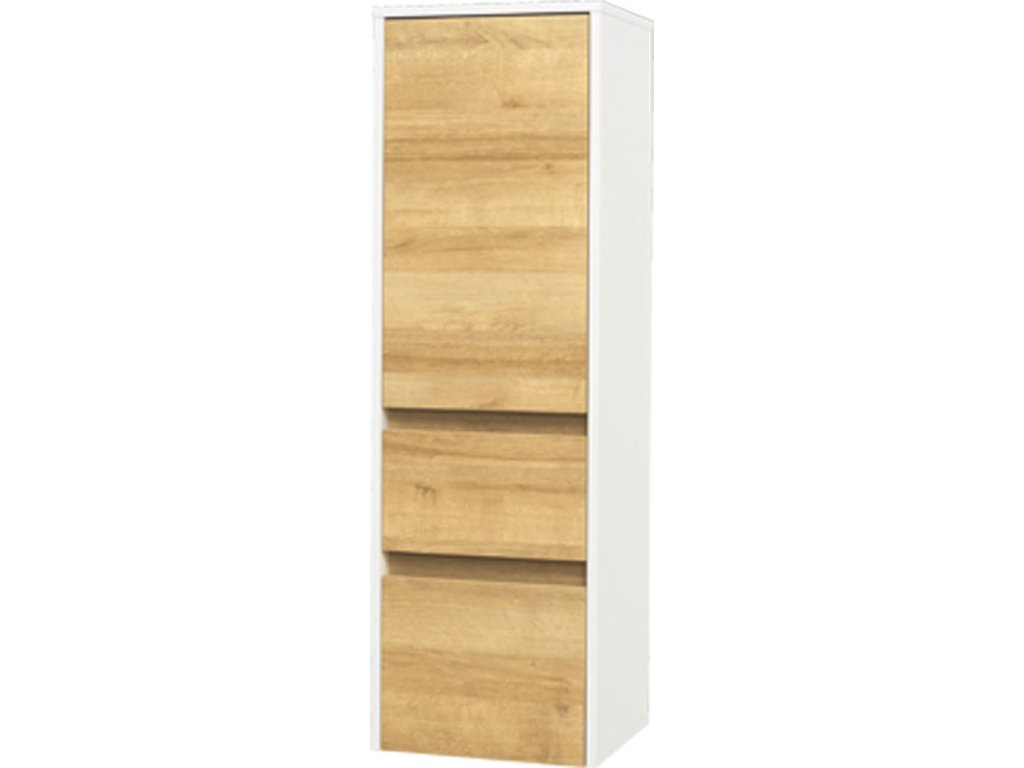 Opto, koupelnová skříňka, vysoká, 401x1247x360 mm, závěsná, dvířka a 2 zásuvky, levé otevírání, dub Riviera.