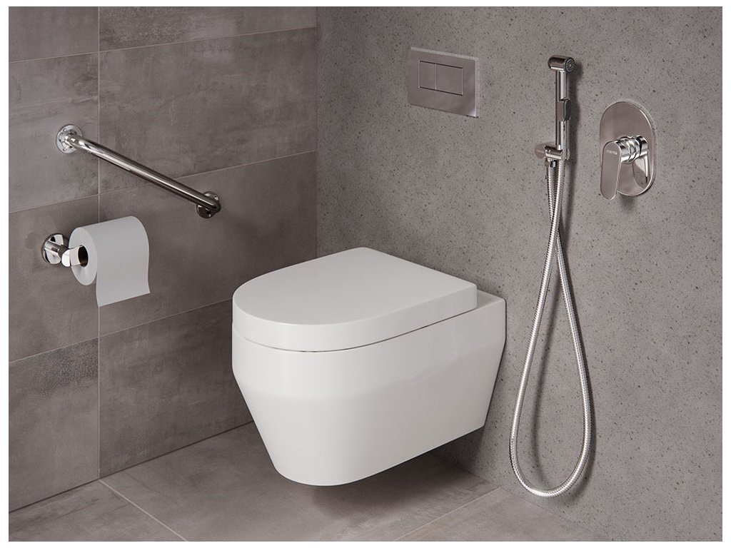Navíc obsahuje bidetovou spršku pro intimní hygienu, dlouhou hadici a praktický držák na zeď.