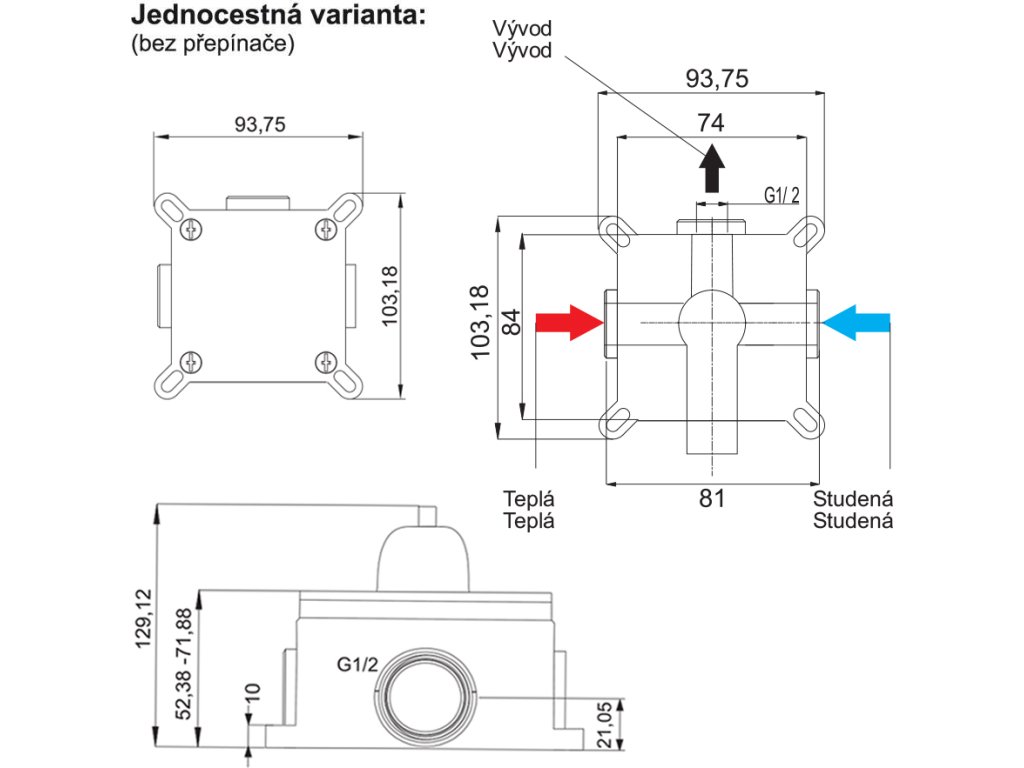 Jednocestná varianta (bez přepínače) je určena do sprchových koutů s jednou sprchou nebo k vaněs napouštěním přepadem, bez možnosti sprchování.