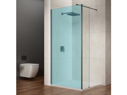 Hliníkové profily v barvě Black, sklo Čiré, síla skla 8 mm, WALK IN, rozměr 900 mm, výška 2000 mm.
